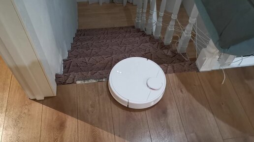 Робот-пылесос Xiaomi на краю лестницы.