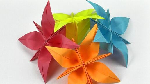 Как сделать букет цветов Лилий из бумаги оригами А4 (осеннее весеннее оригами поделки для украшения зала на праздник 8 марта своими руками)