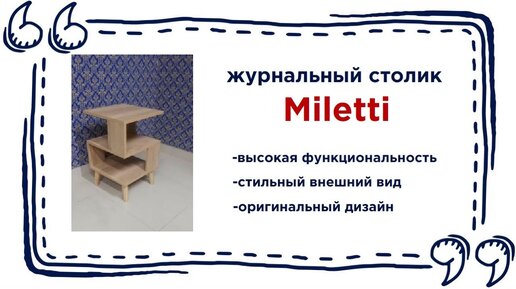 Небольшой журнальный столик Miletti. Купить оригинальный журнальный стол в Калининграде и области