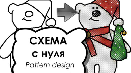 Рисуем схему вышивки крестом "Новогодний мишка" с нуля