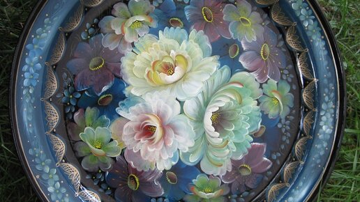Поднос из Кемерово (урало-сибирская роспись, кемеровский вариант), на круглых и удлиненных формах