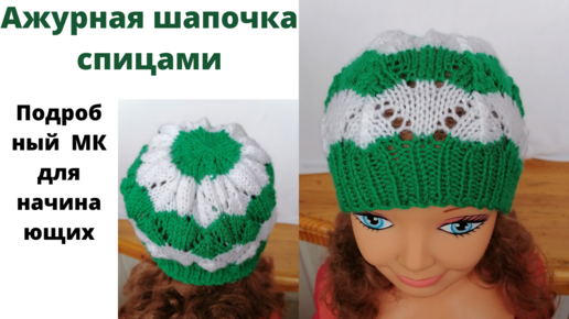 Как связать ажурную шапочку спицами. Летняя шапочка для девочки спицами. Ажурная шапочка спицами.