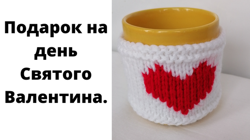 Как связать сердце спицами. Подарок на день Святого Валентина . Чехол на кружку с сердцем связать спицами.