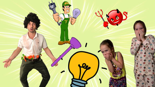 Аринка и сестричка шутят над мастером и весело играют