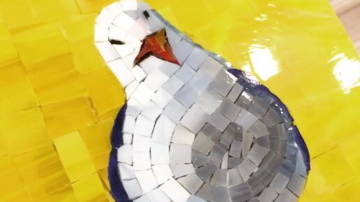 Смешная чайка. Мозаика из витражного стекла.