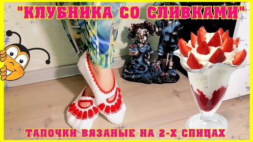 Тапочки "Клубника со сливками" на двух спицах.