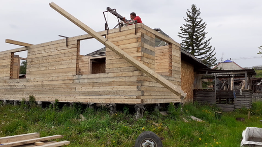 затаскиваю 6 метровый брус на дом у себя на стройке.