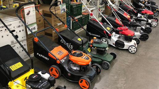 Видеообзор ассортимента с ценами бензиновых газонокосилок в Леруа Мерлен.