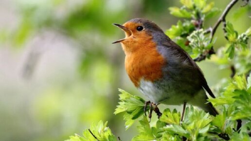Малиновка или Зарянка поет. Звуки природы. Пение птиц в лесу.