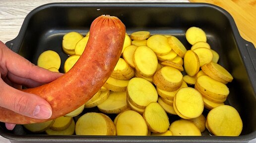 Беру картошку и колбасу и готовлю необычное блюдо. Картошка с колбаской и сыром в духовке.