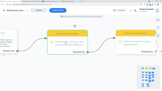 Запуск воронки продаж в smartsender, в зависимости поступающих данных после вебинара