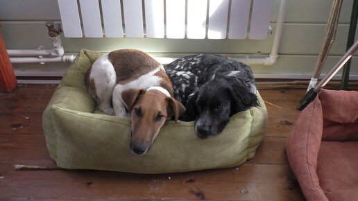Щенок с русского спаниеля 6 месяцев растет с фокстерьером