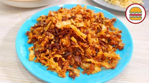 Хрустящий жареный лук. Жареный лук фри для бургеров и хот-догов.