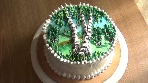 Идея для украшения домашнего торта. Попробовала сделать картину на торте из белкового крема. Показываю, что получилось
