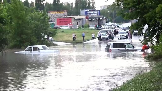 Саратов ушел под воду: тонут машины, град с виноград, уплыл асфальт
