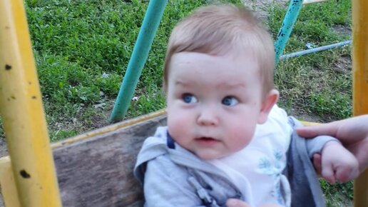 Первый раз прокатился на качелях..Малыш и эмоции))