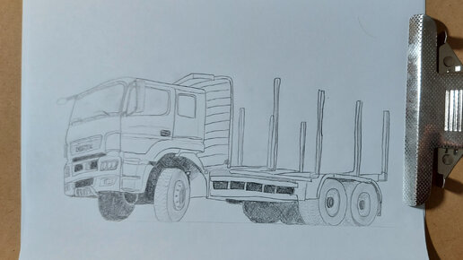 Рисую КАМАЗ-6580 (поколение К4) сортиментовоз карандашом.
