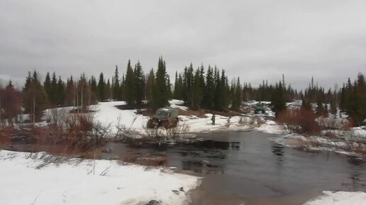 Вездеходы Зырянин через весеннюю речку.