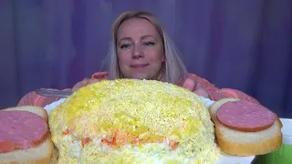 Мукбанг салат Мимоза/ Mukbang мимоза/ еда на камеру.