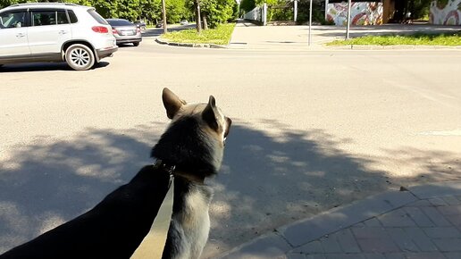 Хотела показать, как мы со щеном Дариком хорошо переходим дорогу, а показала, как плохо. Он меня снес