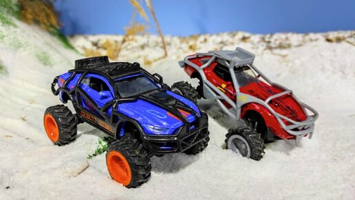 Машинки игрушки скатываются с снежной горки. KirCarToy