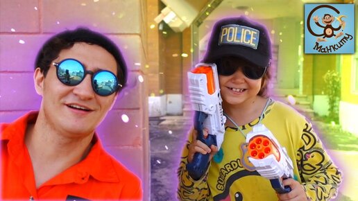 Дети и Машина. Милан и Папа играют в погоню за воришкой. Pretend Play Police Манкиту