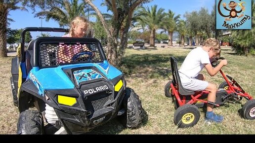 Дети и машинки. Дети катаются на детских машинах. МанкиТайм