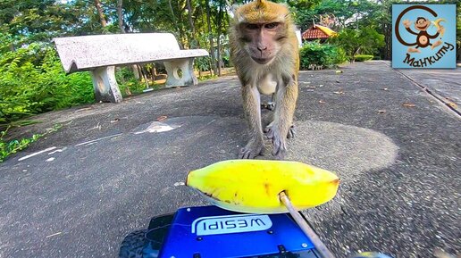 Дети и машина. Машинки игрушки и домик на колёсах среди обезьян. МанкиТайм