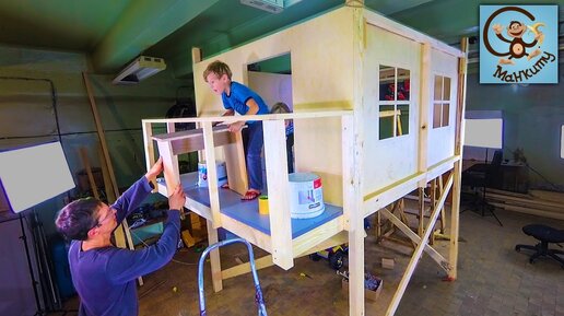 Diy Манкиту дети строят 2 этажный дом для детей / Diy playhouse for kids