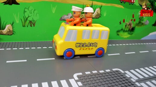 Toy cars for kids. Police car, Yellow Bus. MankiKids