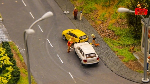 Children and mashines and toy trains and bus
