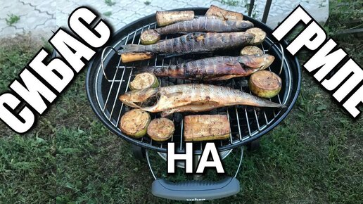 Сибас на угольном гриле Weber compact 47. Рыба на гриле вебер.