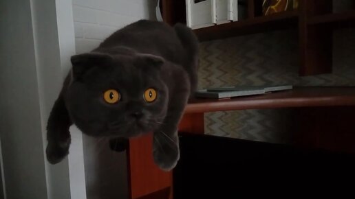 Красивый кот шотландской породы, на охоте! Кошачьи шалости.