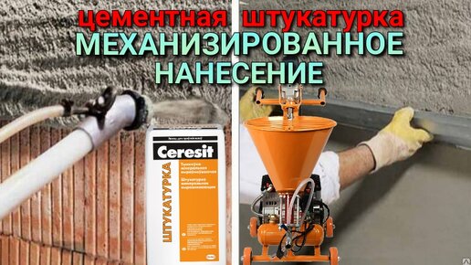 Механизированное нанесение цементной штукатурки. Полный цикл.
