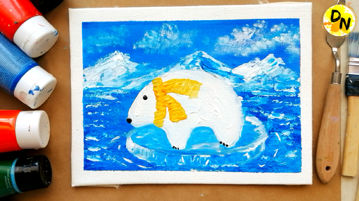Как нарисовать ПОЛЯРНОГО МЕДВЕДЯ НА ЛЬДИНЕ, горы, облака, море | Новогодний рисунок| Урок рисования