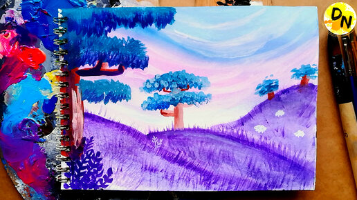 Как Нарисовать ФИОЛЕТОВЫЕ ХОЛМЫ Гуашью // Для Начинающих