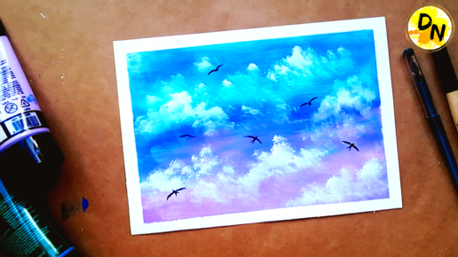 Как нарисовать ПТИЦ В НЕБЕ акрилом | Урок рисования красками |Простой рисунок облаков для начинающих