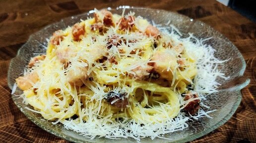 "Pasta alla carbonara" Паста КАРБОНАРА. (Спагетти с беконом в сливочном соусе).