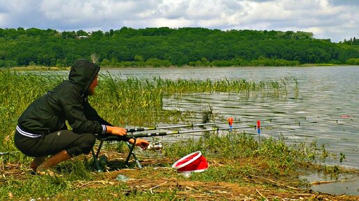 Вело-рыболовный поход. Ловля рыбы в водохранилище на фидер.Поклёвки на фидер крупным планом.