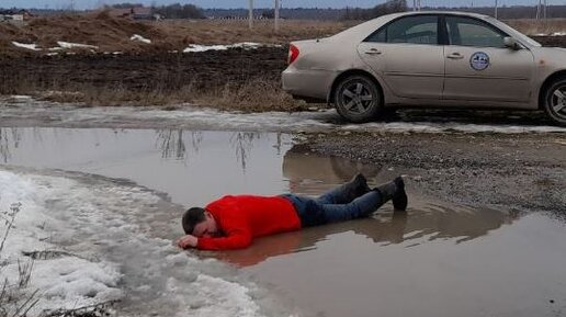 Зима, холод, в луже лежит человек