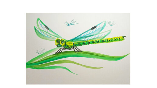 🍀Зеленая стрекоза🎨🍀Рисунок гуашью.