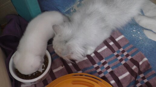 Шотландскому котенку 5 недель, уже ест сухой корм