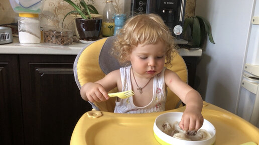 Маленький воробей кушает пельмешки