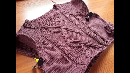 Джемпер спицами (винный). Часть 3. Аран (17-27 ряды).