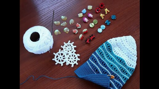 Шапочка - кепка (панамка) крючком в морском стиле. Часть 4.