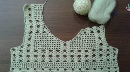 Пуловер крючком Мятная свежесть (из опроса №3). Часть 7. Горловина.