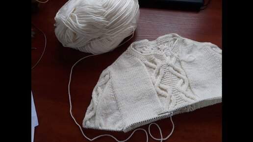 Пуловер с аранами спицами. Часть 8. Формируем пройму.