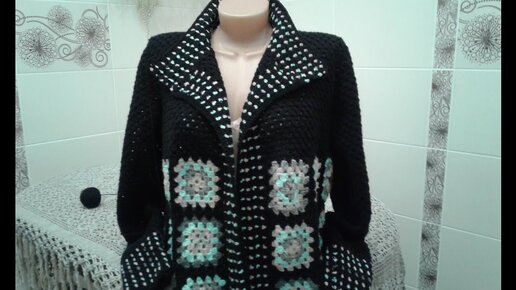 Кардиган из квадратных мотивов. Часть 6. Планка, воротник. Knitting women's cardigan.