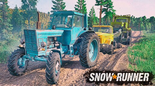 ТРАКТОР ВЫТАЩИЛ ОГРОМНЫЙ КРАЗ С ПРИЦЕПОМ. SNOWRUNNER