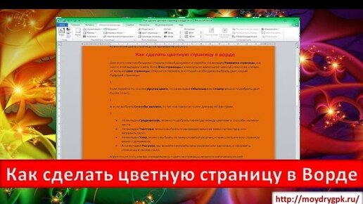 Как сделать цветной фон у страницы в ворде